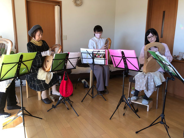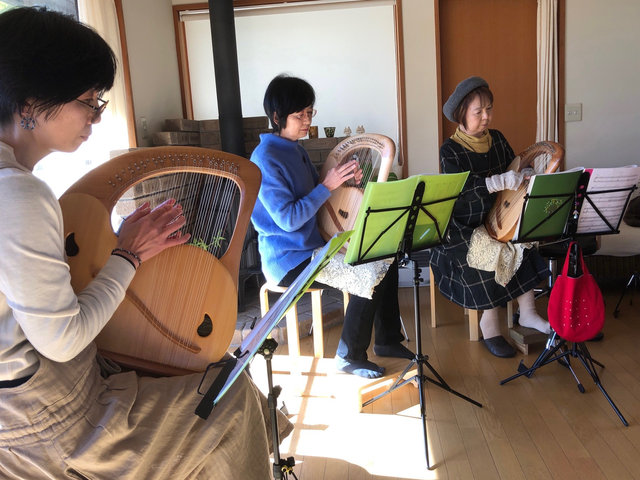 この日は、皆さんがお持ちのドイツ製のザーレム工房、ヨエックス工房、マーチンニース工房の本当に素晴らしいライアーが勢ぞろいし、そこに我々のアフロディーテの竪琴も加えて頂き、最後に皆さんでアンサンブル演奏を聞かせてくださいました。